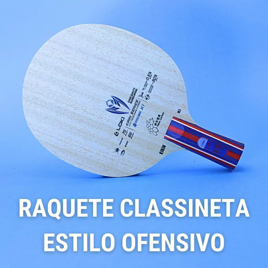 A raquete Loki K1 classineta, com cabo reto e carbono na estrutura, oferece firmeza e velocidade nos ataques.